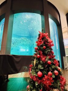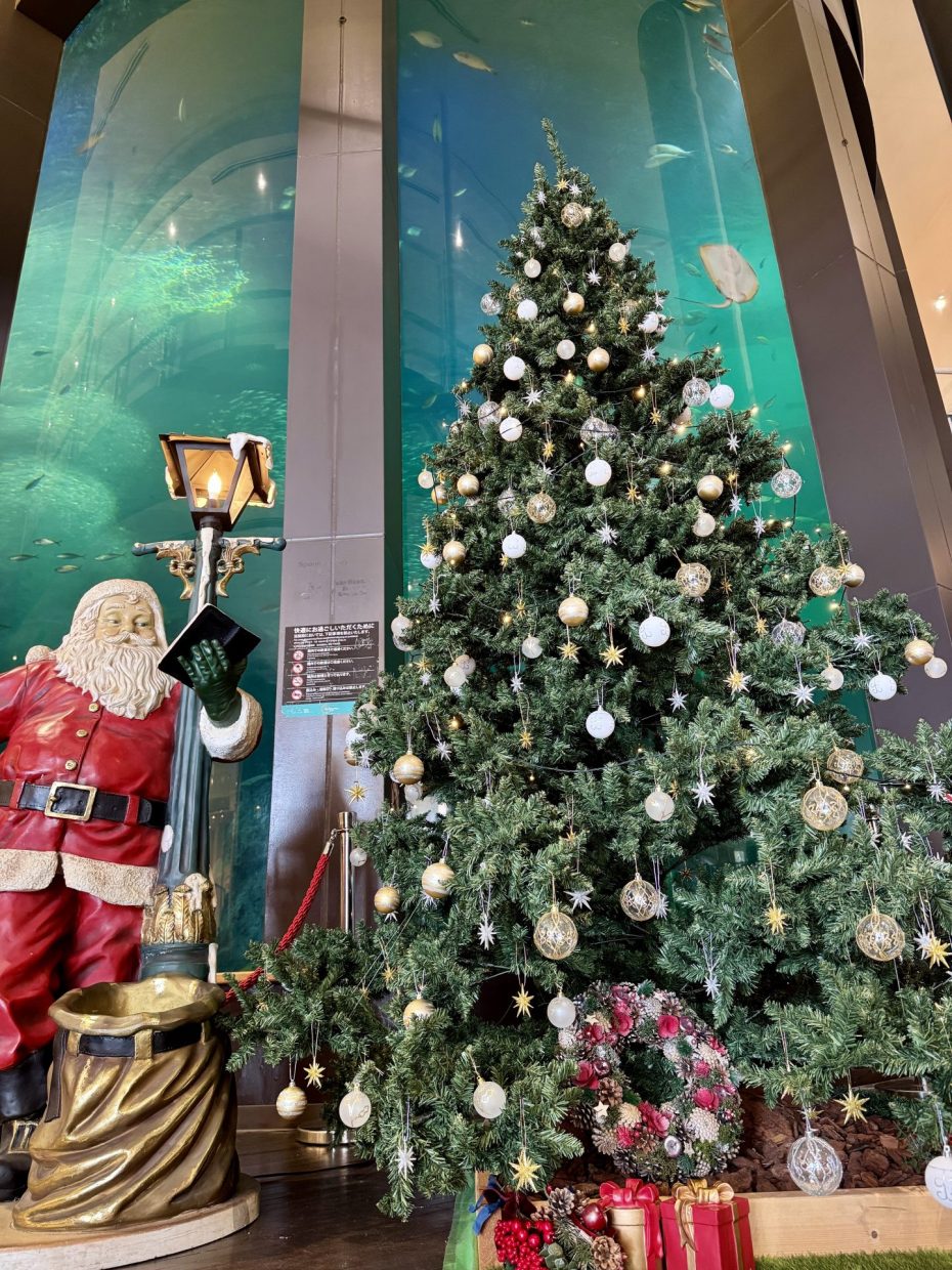ベイサイドアクアリウムをバックにキラキラ輝く高さ3メートルのクリスマスツリーとサンタクロース登場🎅🏼