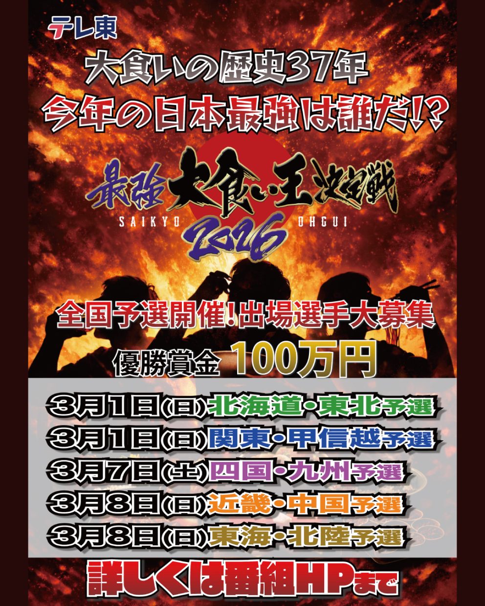 【出場者募集中】詳しくは▶️テレ東『最強大食い王決定戦2026』公式ホームページをご確認くださいhttps://www.tv-tokyo.co.jp/oogui/