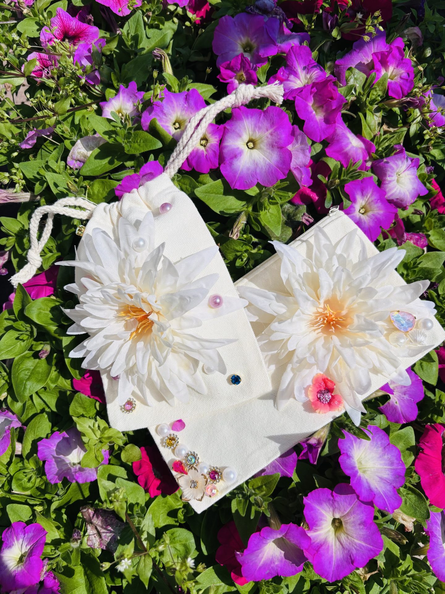 造花やキラキラしたパーツで自分の好きなように飾っていきます。