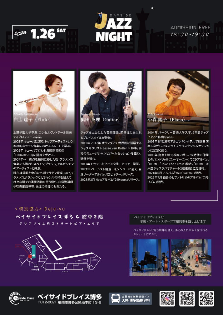 1月はフルート・ギター・ピアノが奏でる素敵なメロディーをお楽しみ頂けます♪