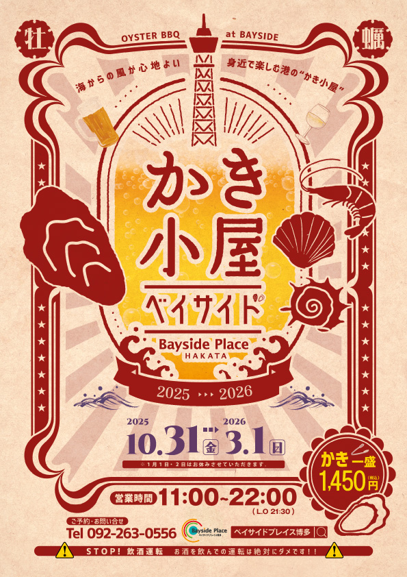10月31日(金)から期間限定(2026年3月1日(日)まで)で「かき小屋inベイサイド」オープンします!